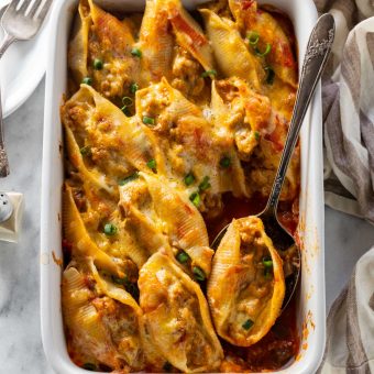 An original recipe from Baked by RachelRecipe yields 12 jumbo stuffed shells, serving roughly 4.